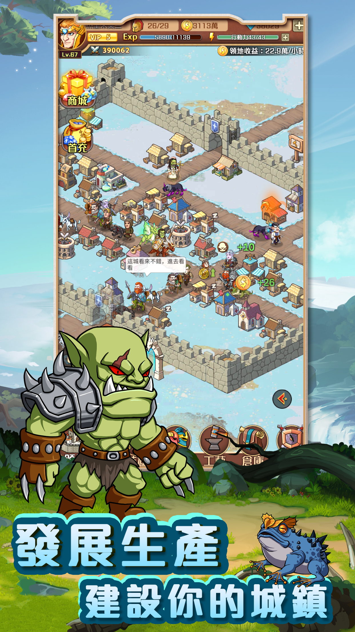一款玩法创新的模拟策略战争游戏。玩家化身奇幻世界中的一城之主,招募英雄,发展城镇,制造装备,组建军团。最终带领人类走出绝境,收复领土,重建荣光。